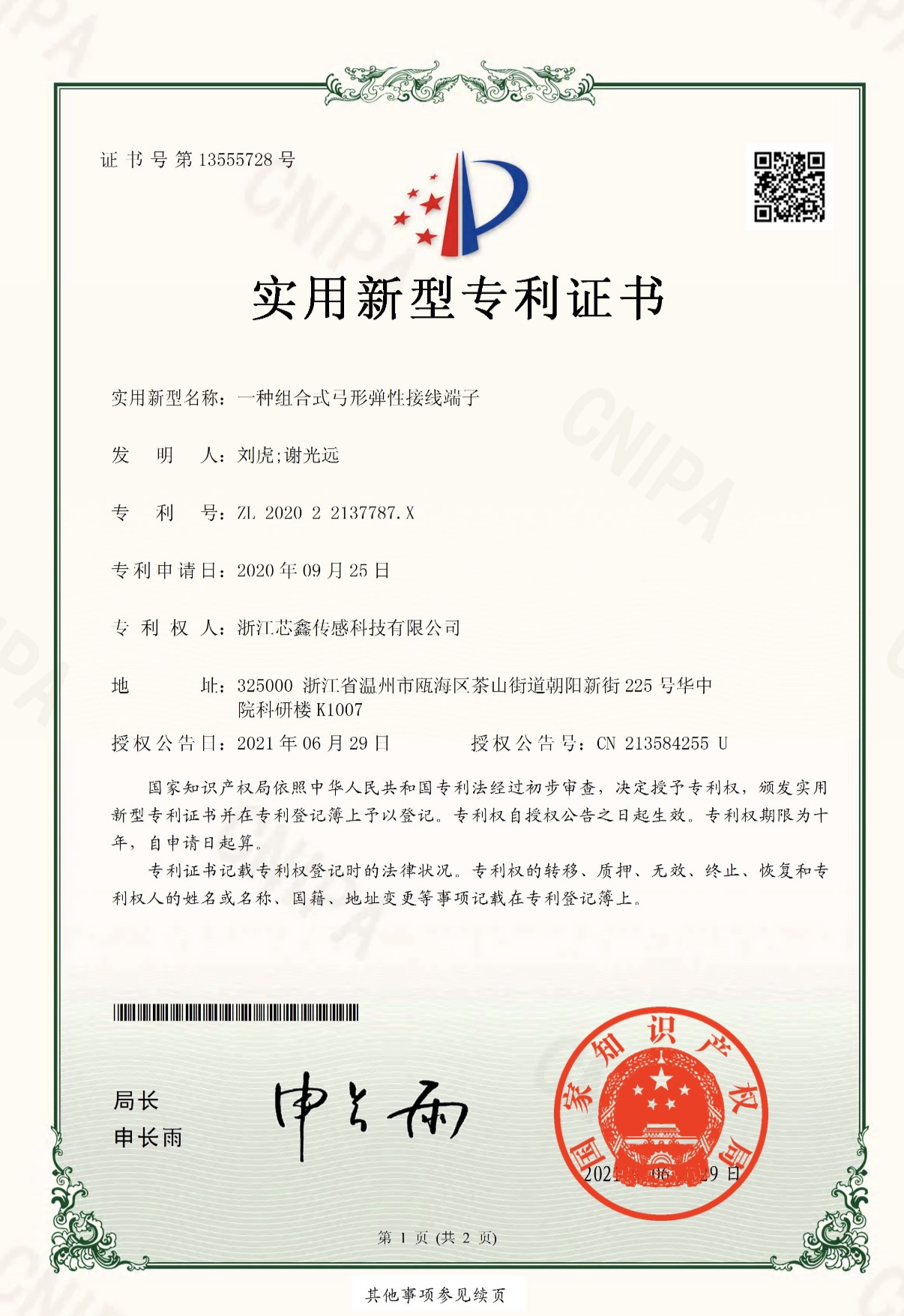 专利证书 | Patent Certificates